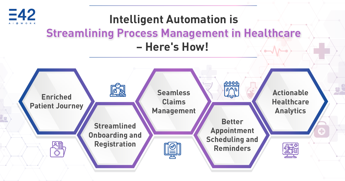 E42 is a no-code cognitive process automation (CPA) platform. It allows you to build AI co-workers that automate enterprise processes across functions and verticals. Market leaders across industries use our AI co-workers to streamline their operations. One such AI co-worker is the AI Receptionist for Healthcare Providers. This co-worker automates monotonous tasks like appointment scheduling, billing and compliance, clinical documentation, and more. To know more about what AI-led automation can do for healthcare providers and to embark on your automation journey, reach out to us at interact@e42.ai today!